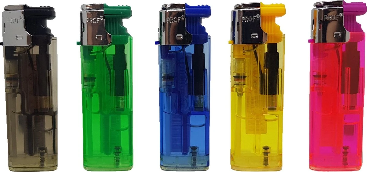 5 Stormaanstekers met een stevige windproof verstelbare stormvlam. Bijvullen mogelijk met aanstekergas.