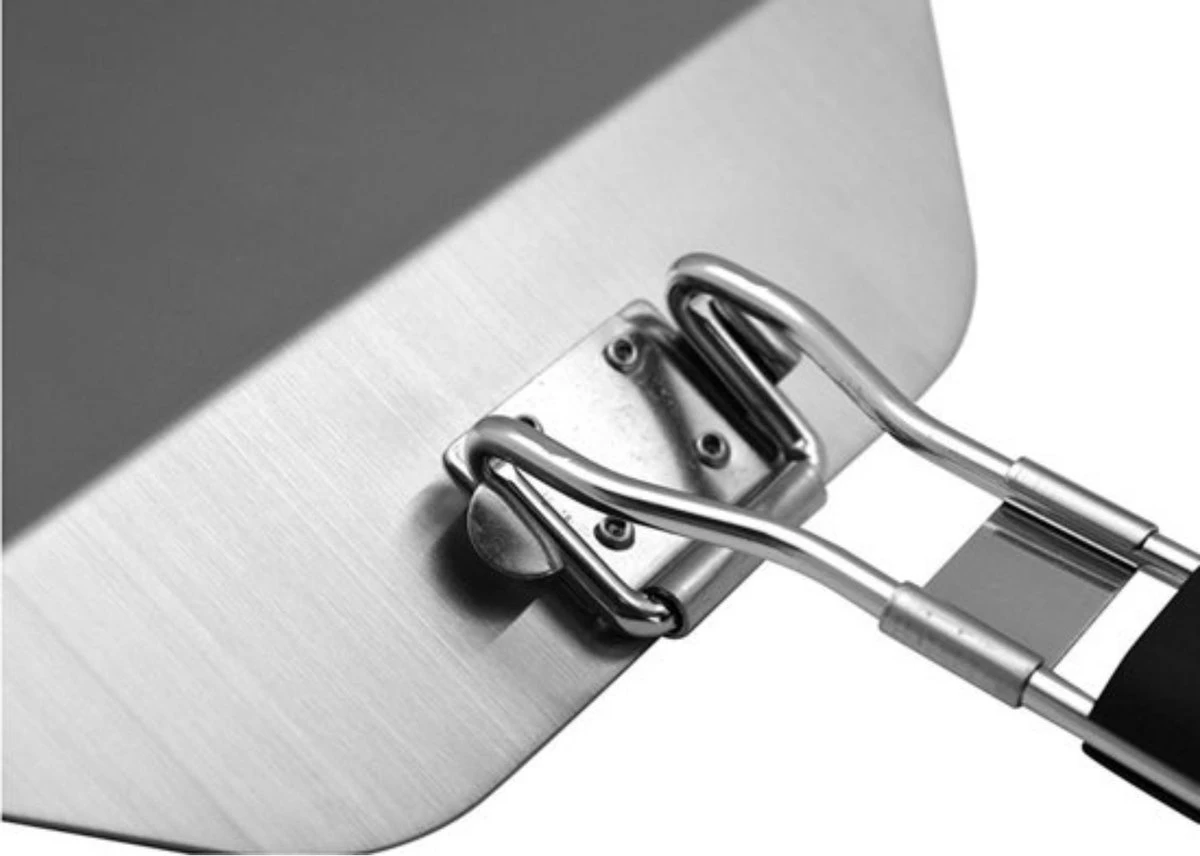 De plaat van de pizzaschep is gemaakt van duurzaam roestvrij staal. RVS is een fijn materiaal voor in de keuken. Het is hygiënisch, want weert corrosie en bacteriën. Het zwarte, kunststof handvat werkt isolerend, dus houdt de warmte tegen en is inklapbaar. Dat scheelt weer ruimte als je de schep opbergt. Aan het eind van het handvat zit ook een ring, waarmee je de spatel op kan hangen.