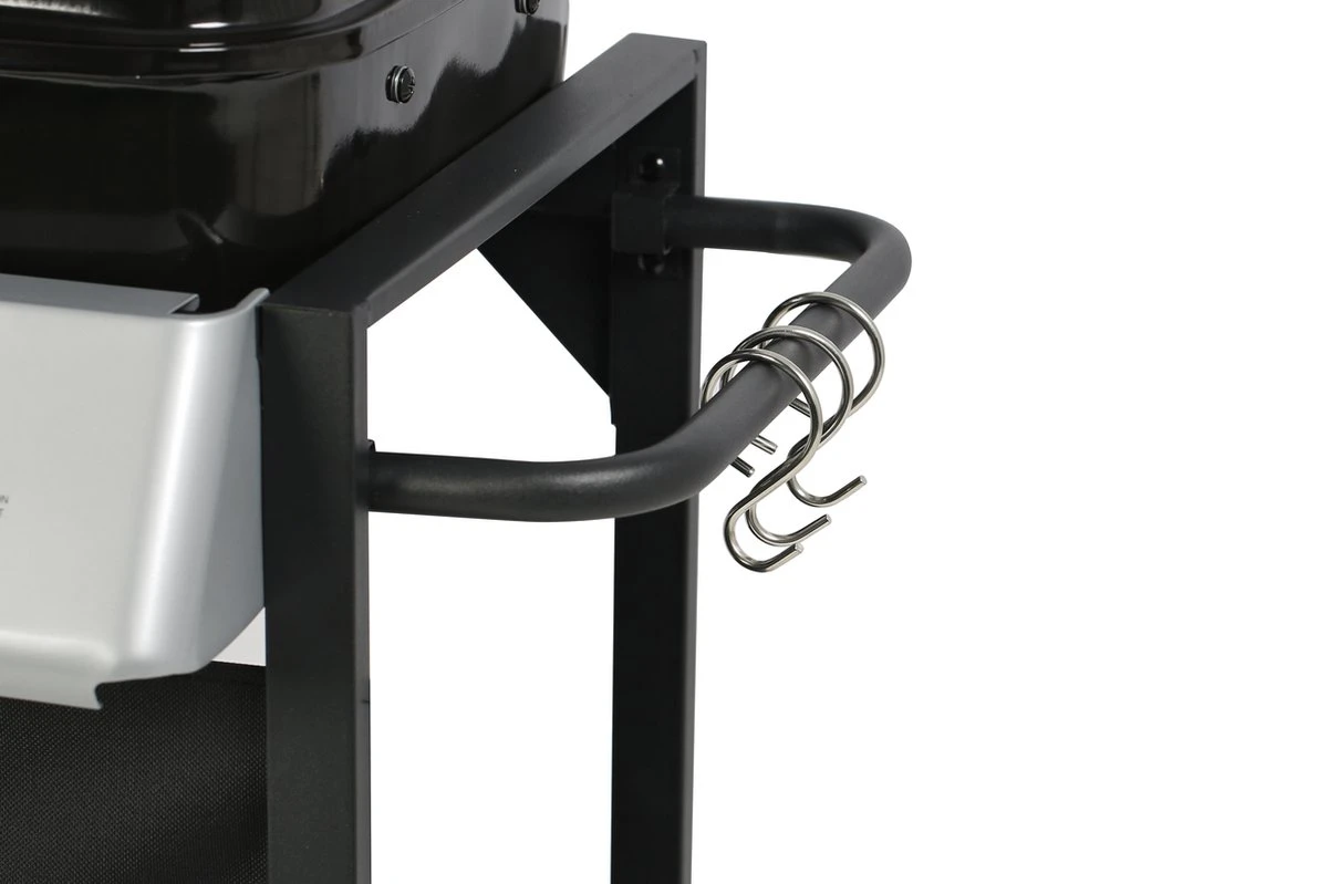 Een piëzo- ontstekingssysteem met druk- en draaiknoppen zorgt voor een snelle en betrouwbare start. Dankzij de zijtafel en de gereedschapshaken heb je alle benodigdheden tijdens het grillen bij de hand.