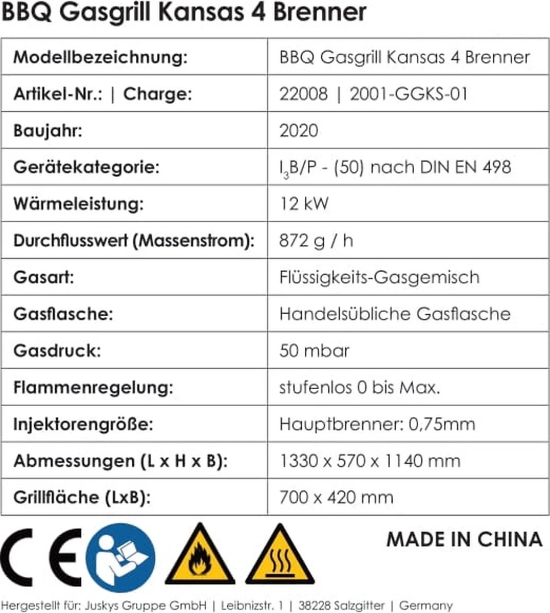 Leveringsomvang: 1 × gasgrill 1 × gietijzeren grillrooster (3-delig) 1 × warmhoudrek 1 × deksel met thermometer 1 × Vetafscheider
