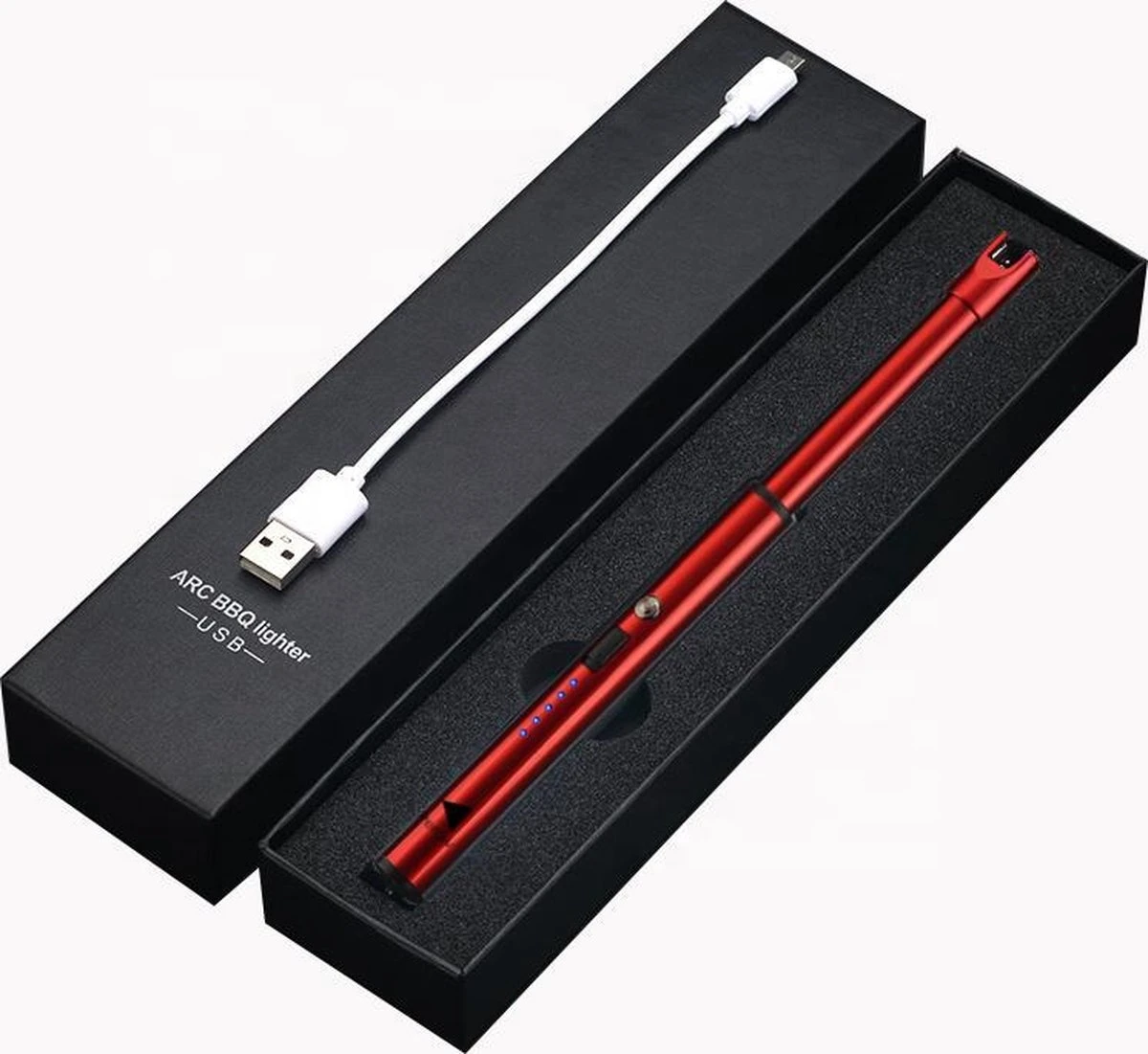 Oplaadbare Lange Dunne Elektrische Aansteker – Duurzame Plasma Aansteker – Inclusief Cadeauverpakking – BBQ – Kaarsen – Rood