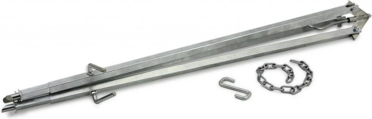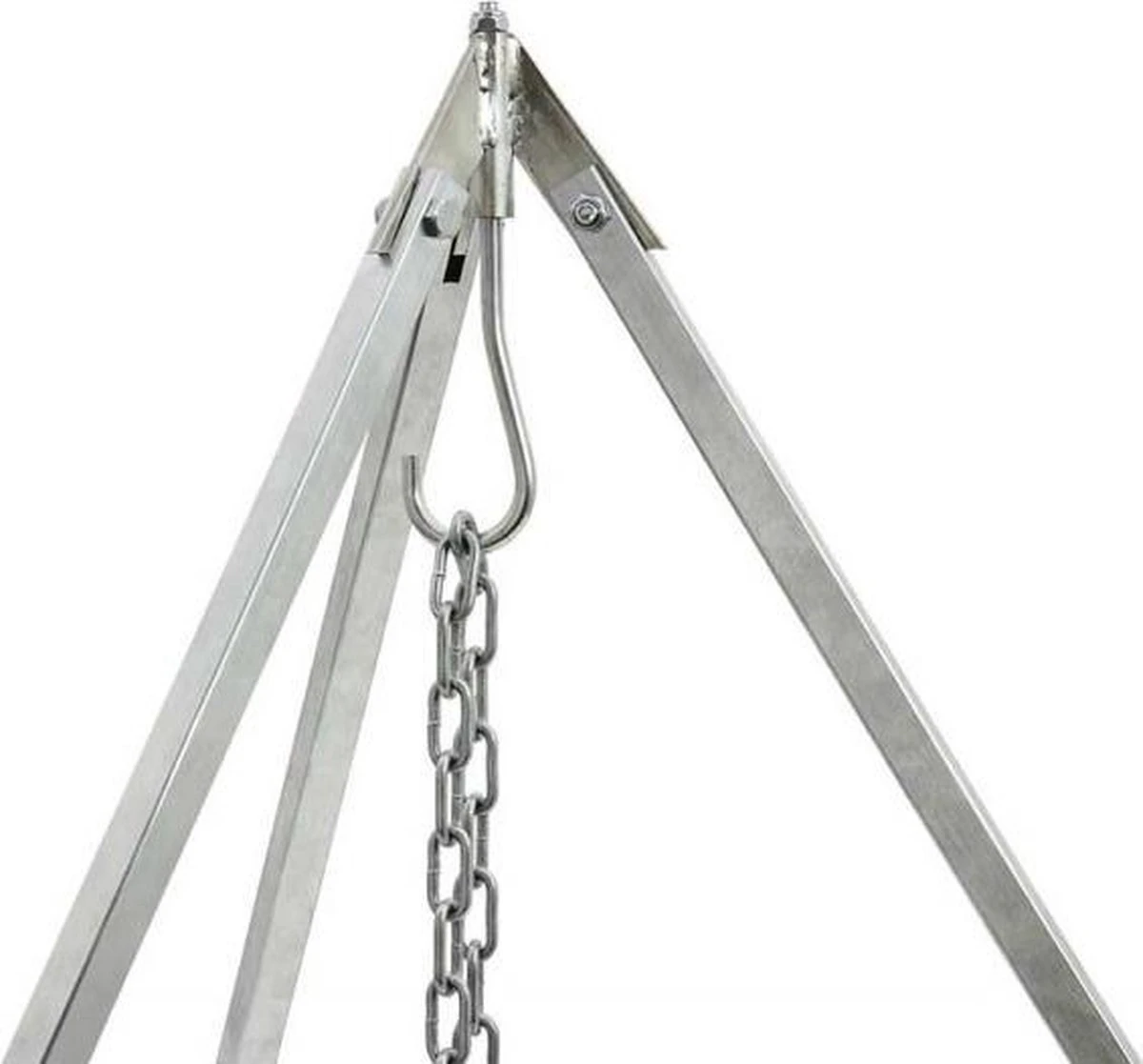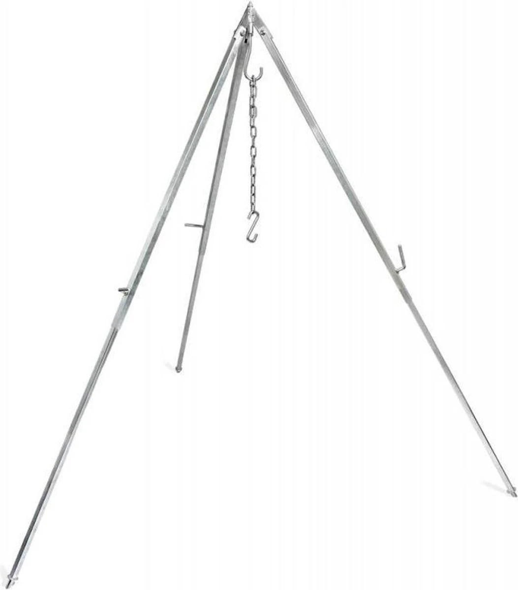Zeer solide 3-poot waarmee je eenvoudig en stabiel je dutch oven boven je kampvuur kunt hangen. Hoogte instelbaar van 88 tot 159cm, Gewicht 4,1kg. Maximaal belastbaar tot 40kg.
